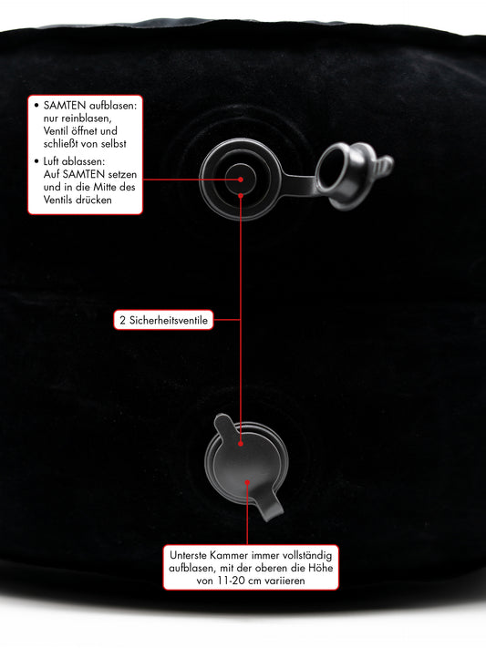 SAMTEN SUN NEU SCHWARZ - DAS RUNDE, AUFBLASBARE REISE-MEDITATIONSKISSEN NUR 312G, YOGA ZAFU, KAPOK - Schwarz