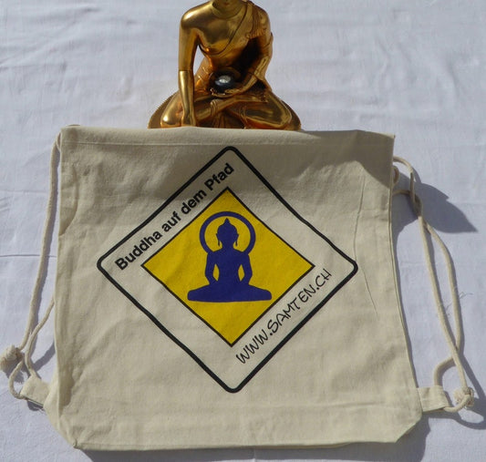 Öko-Baumwoll-Rucksack / Kitchener-Art, mit 2 Kordelzügen, zum über die Schulter tragen. 100% Öko-Baumwolle Grösse: 38×50 cm Gewicht: 85 Gramm